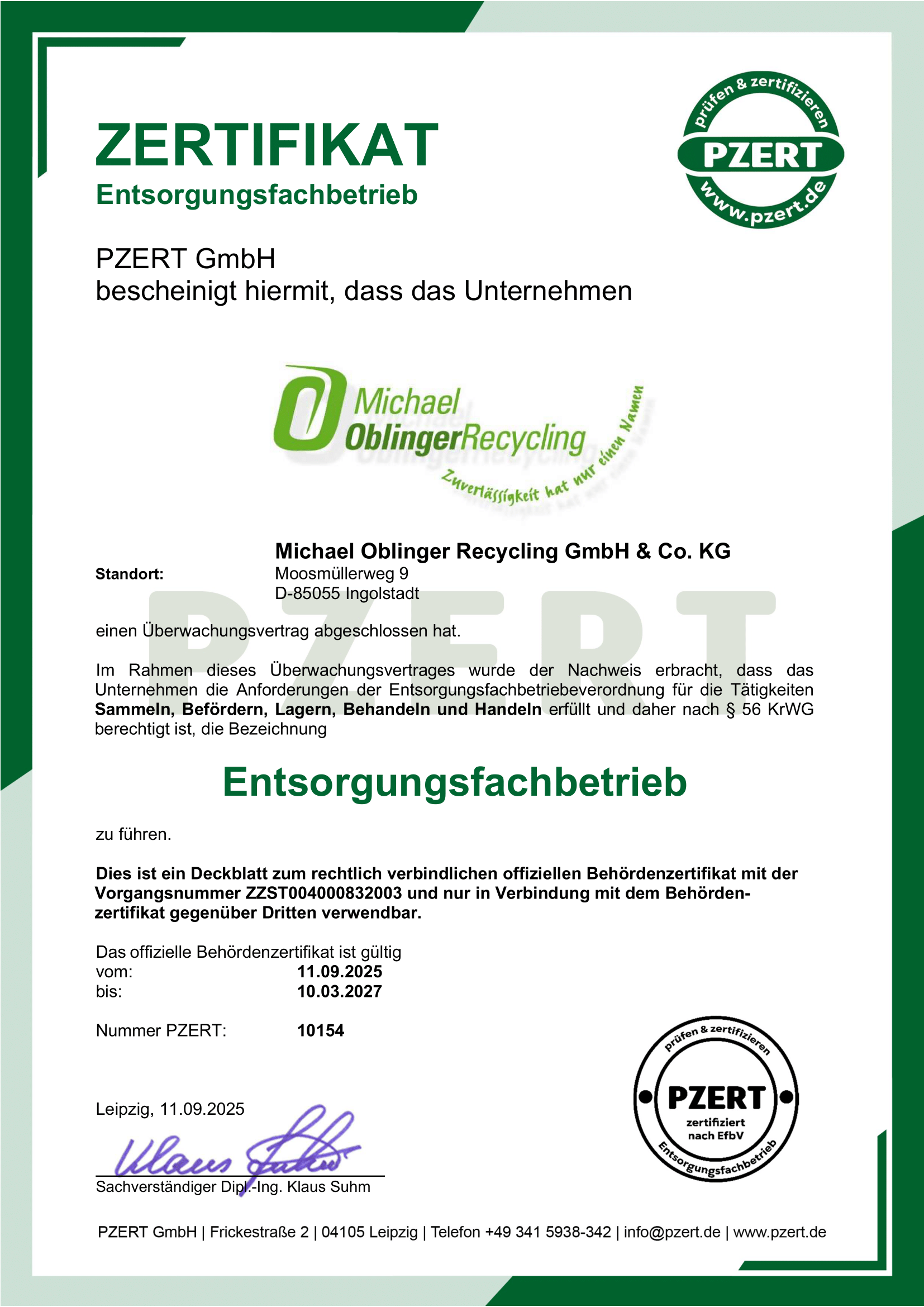 Oblinger Recycling als zertifizierter Entsorgungsfachbetrieb in Ingolstadt und der Region 10 verwertet und entsorgt Ihre Abfälle fachgerecht und umweltschonend. Überzeugen Sie sich!
